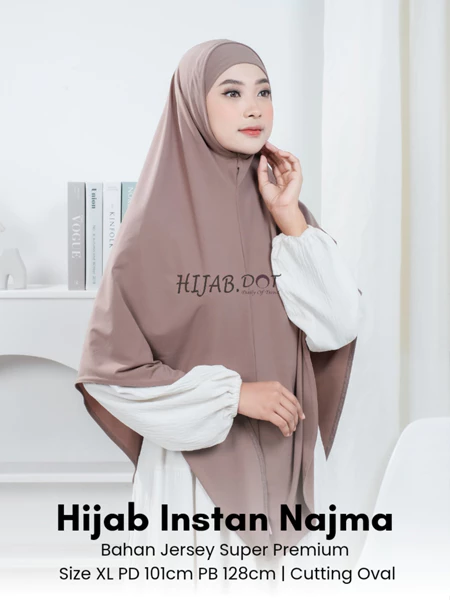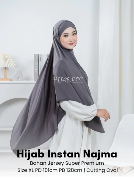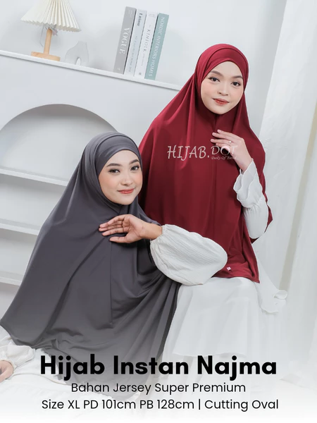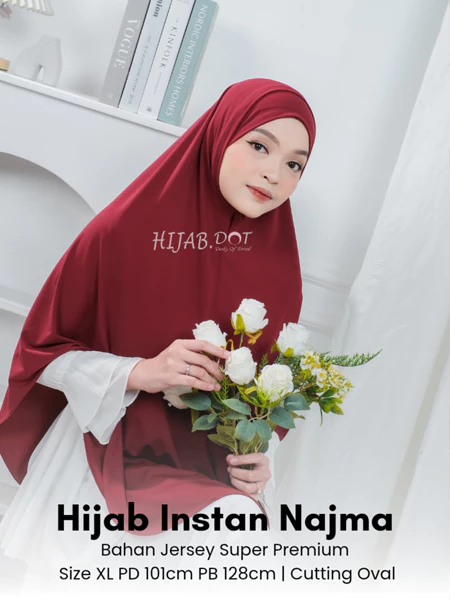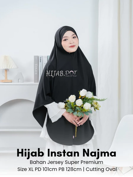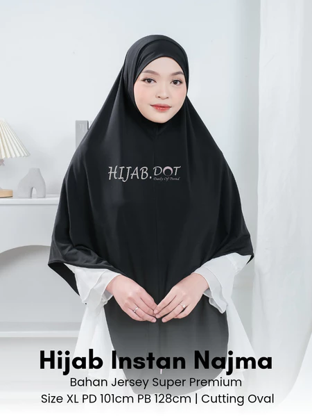 Hijab instant najma berbahan jersey super yang memiliki karakteristik kain bertekstur lembut, yang halus dan akan terasa ringan ketika dipakai, breathable sehingga akan tetap sejuk dan stylish sepanjang hari. Pilihan tepat untuk Anda yang ingin tampil elegan dan praktis dalam segala situasi.